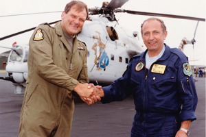 Vzácná návštěva v Prostějově - gen. Peřina. Před společným letem na Mi-17. Foto: Archiv J. Macury