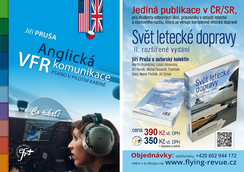 ![]() Psáno v pilotní kabině Autor: Jiří Pruša a kol. Rok vydání: 2016 Vydal: Galileo Training, s.r.o., v edici Flying Revue Jedinečná publikace na leteckém knižním trhu na pomoc pilotům při VFR letech do zahraničí. Ne jen pouhá teorie, ale praktické návody a ukázky anglické VFR komunikace v Evropě i USA. Evropa i svět se pro malá letadla otevřel s GPS, Schengenským prostorem a navigačními aplikacemi. Aby se vám podařilo překonat problém anglické komunikace, připravili jsme pro vás publikaci s praktickými návody a ukázkami anglické VFR komunikace jak v Evropě tak v USA. » Více o knize si přečtěte zde. Kniha vznikla ve spolupráci s Řízením letového provozu ČR - odborným poradcem knihy je vedoucí stanoviště FIC Praha Michal Dvořák. |