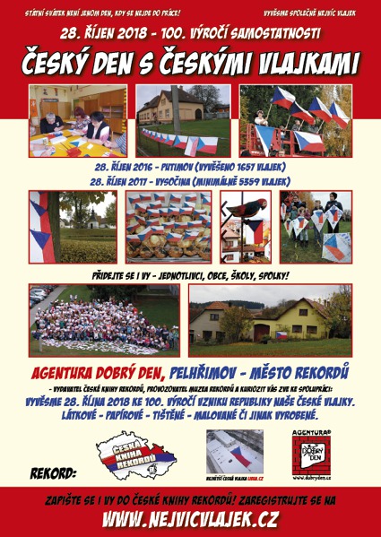 Český den s českými vlajkami na letištích a letadlech Oslavy sta let česko-slovenského letectví i sta let od založení našeho státu vrcholí. Jednou z akcí, kdy můžeme propojit oslavy výročí 100 let letectví a 100 let Československa, je i celorepublikový projekt pelhřimovské agentury Dobrý den Český den s českými vlajkami. Přidejte se k Romanu Kramaříkovi a zapojte se také!