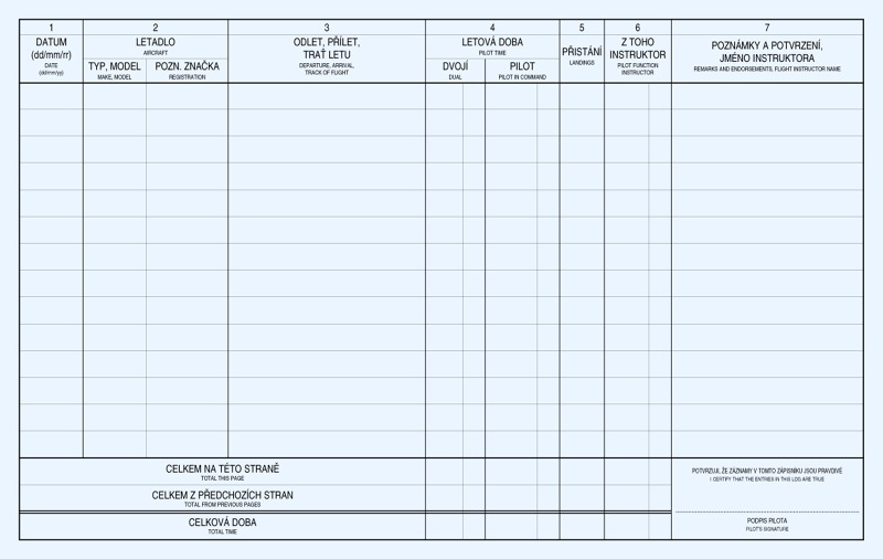 Zápisník odpovídá předpisu LAA ČR a jeho vzor byl LAA ČR schválen.