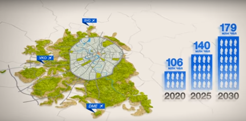 Moskva dosud disponovala třemi mezinárodními letišti: na severu Šeremetěvo (SVO), na západě Vnukovo (VKO) a na jihu Domodědovo (DME). Nyní k nim tedy na jihovýchodě přibylo letiště Žukovskij. Rusové předpokládají do roku 2030 nárůst počtu cestujících do/z Moskvy ze současných cirka 100 milionů na 179 milionů, čtvrté letiště se tak stalo nezbytností.
