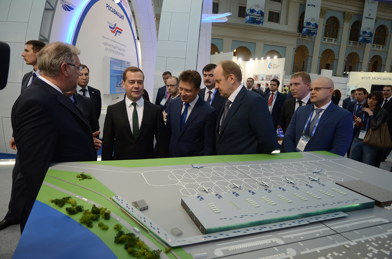 Slavnostní otevření letiště Žukovskij za účasti premiéra Dmitrije Medveděva.